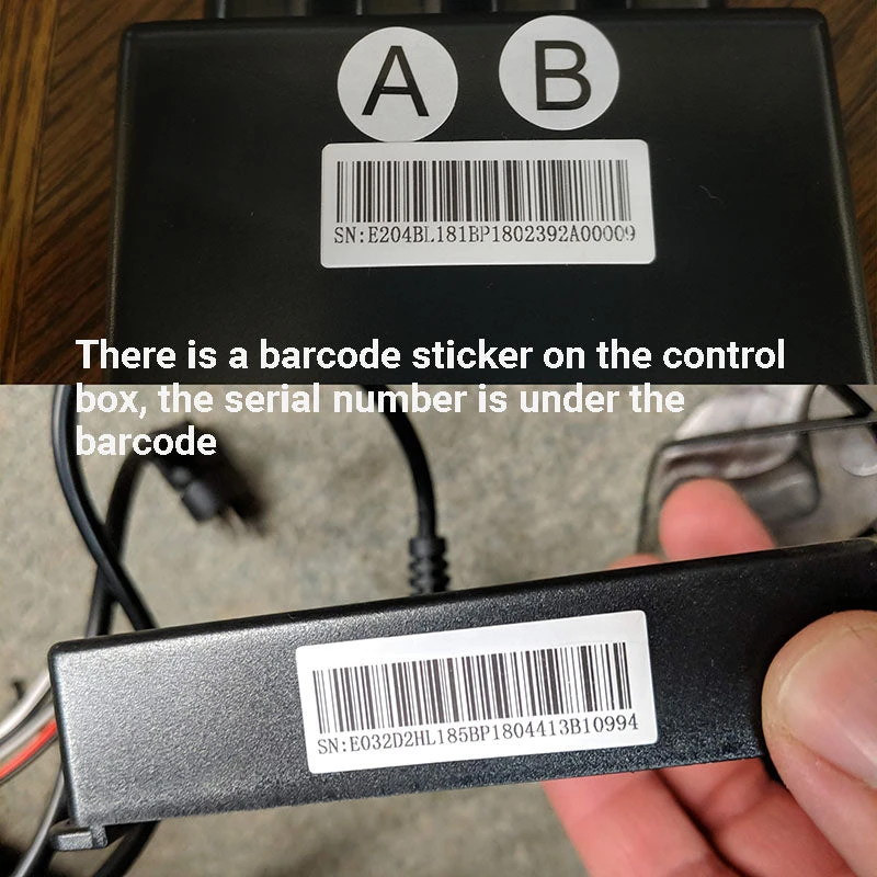 There is a barcode on the control box which is exactly the same as that on the remote control, please provide us with the serial number on it