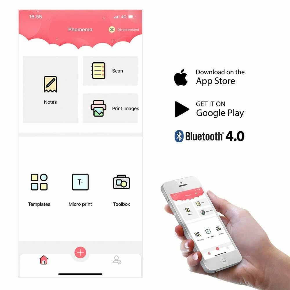 - Easy Operating: Specialized designed app for importing and editing printing content, one-click to print through Bluetooth connection. The app is available for Android 4.0 or above and iOS 8.0 or above.